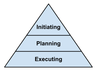 A more static view of the project phases is in a pyramid of abstraction. Initiating is at the abstract and general top and Executing at the concrete and specific bottom. Planning is in the middle and can be determined iteratively by working both top-down and bottom-up.