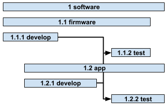 Activities in a Work Breakdown Structure may depend on each other in time. As an example, it makes sense to first develop a new function and than test it, rather than the other way around.